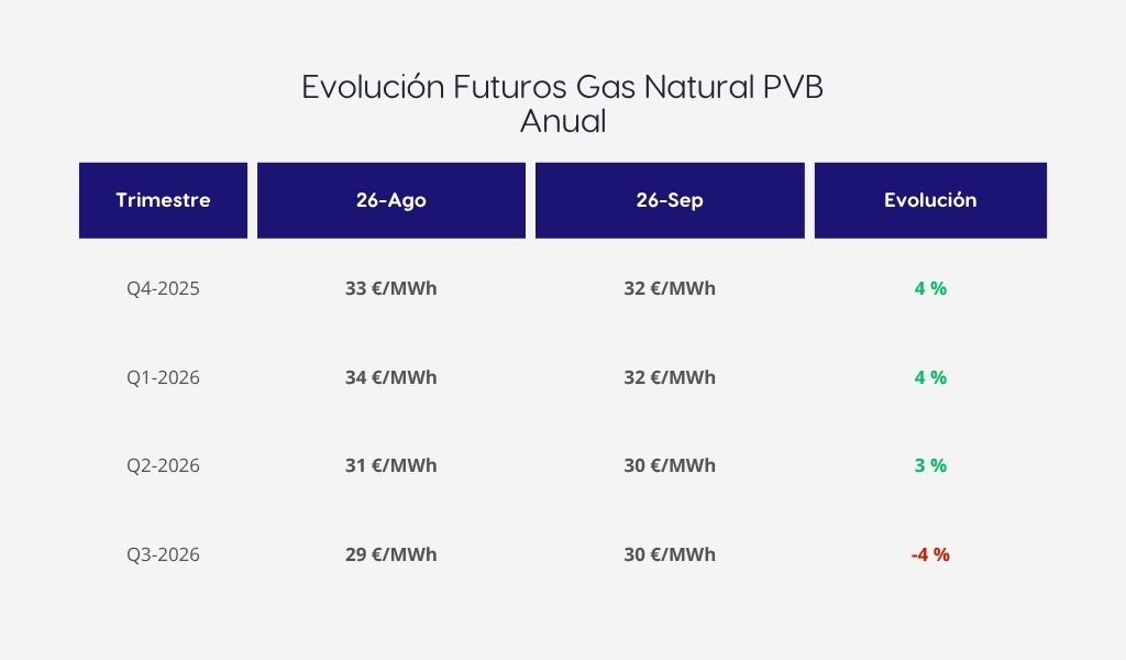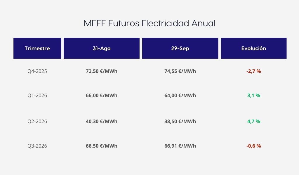 Septiembre ha sido un mes de reequilibrio en los mercados energéticos, con caídas generalizadas en los precios de electricidad, gas y petróleo. Esta evolución ha estado apoyada por una buena disponibilidad renovable, una demanda moderada y un contexto internacional estable.